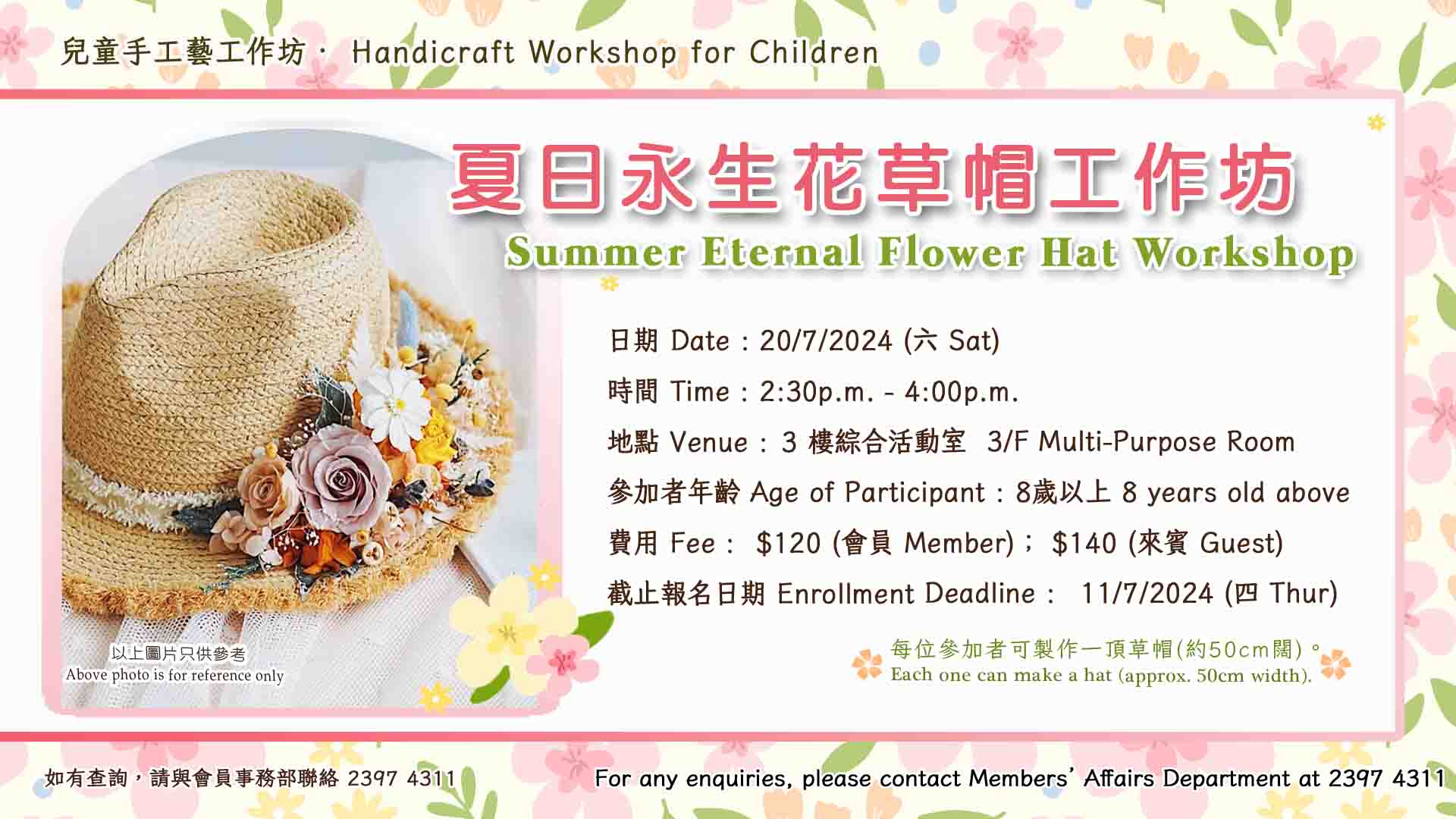 兒童手工藝工作坊 – 夏日永生花草帽