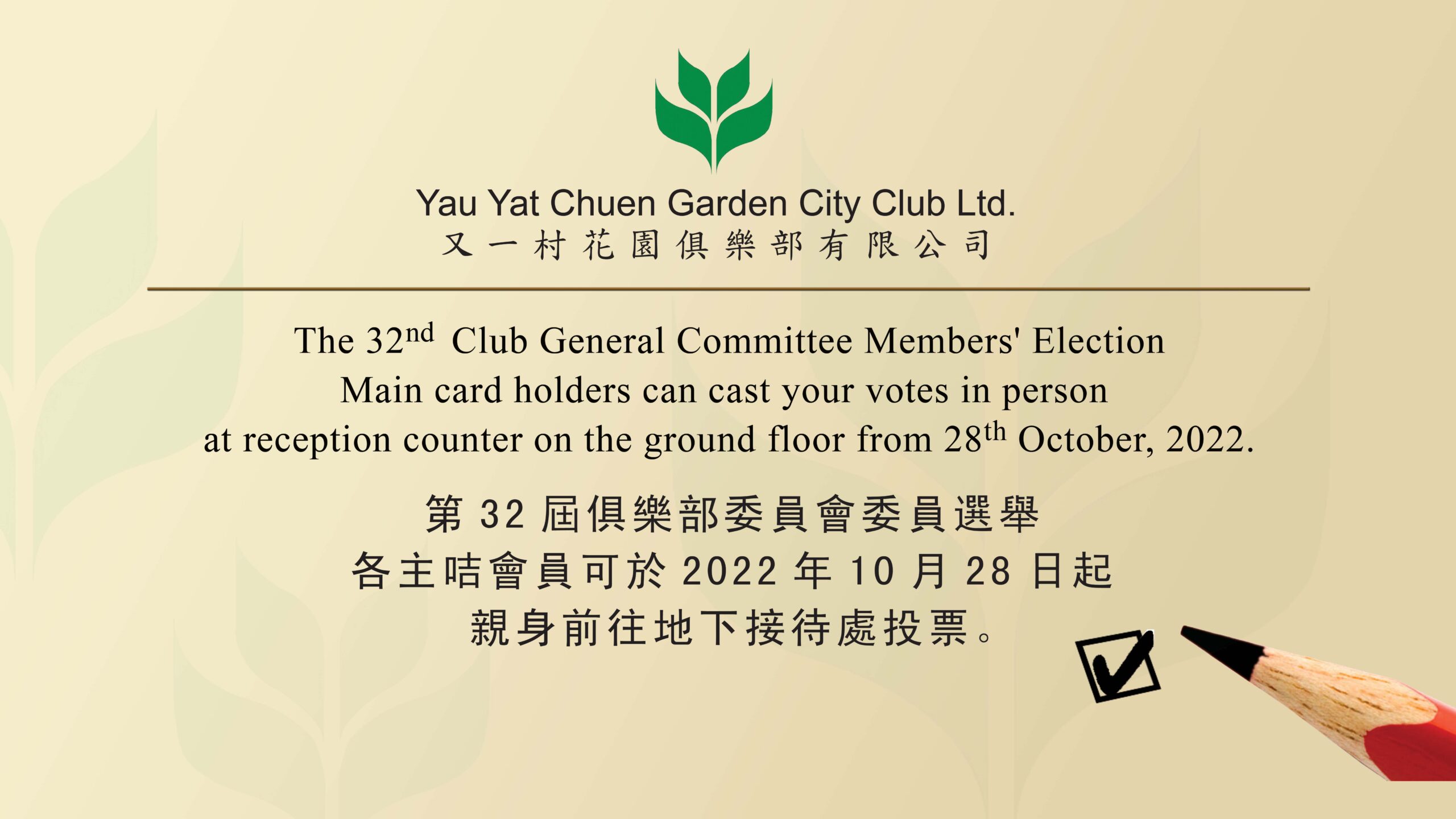 第32屆俱樂部委員會委員選舉投票日 2022-10-28 第32屆俱樂部委員會委員選舉投票日Download Now!Published: 2022-10-28文章導覽新型冠狀病毒應變措施2022年會員大會(活動日期時間地點)